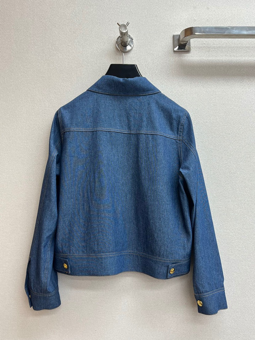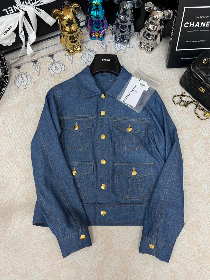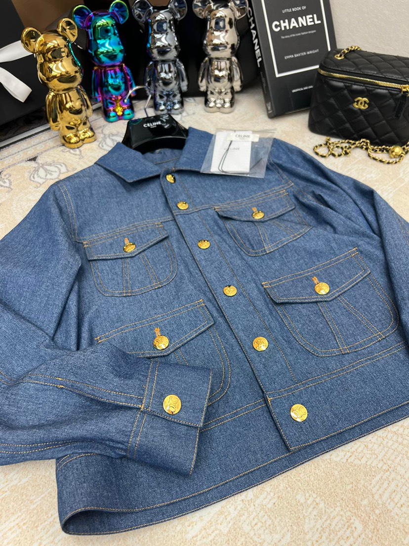 Home / Celine / New Celin 2023 Pre Autumn New Double Pocket Metal Buckle Thin Denim Shirt