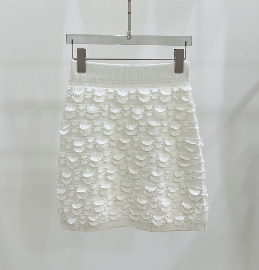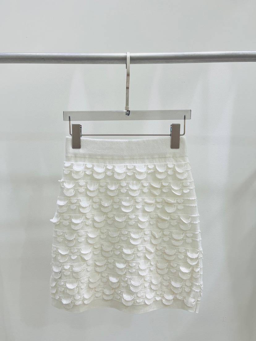 🔥🔥🔥 Chanel23 Summer New Simple Fragrance Style Reduced Age Fish Scale Knitted Short Sleeve ➕ Half skirt